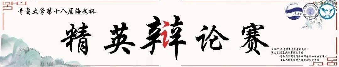 至此,青岛大学第十八届“海文杯”精英辩论赛圆满落幕。思想与逻辑碰撞出的火花将激情点燃。感谢辩手们为我们带来了如此精彩的比赛,同时也感谢同学们对此次辩论赛的关注和支持,期待下一次智慧与智慧的碰撞,我们下届比赛再见!